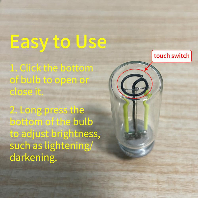 TOUCH CONTROL SWITCH: Dieser berührungsempfindliche Schalter befindet sich an der Unterseite der Glühbirne und ermöglicht es Ihnen, das Licht einfach ein- und auszuschalten und die Helligkeit zu regulieren. Er verbindet modernes Design mit praktischer Funktionalität.