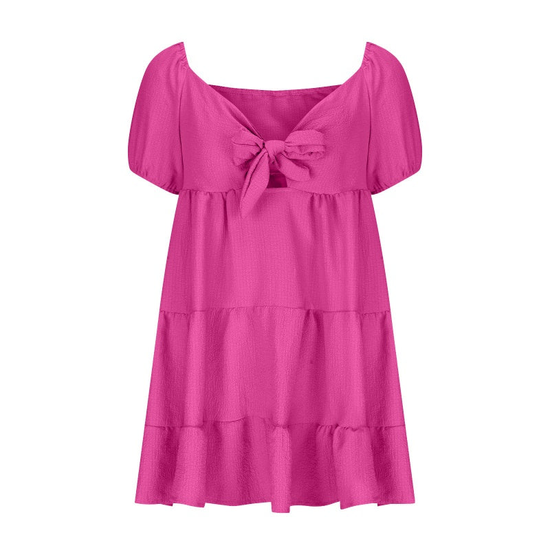 STILVOLLER AUSSCHNITT: Mit einem schicken Ausschnittdetail auf der Vorderseite mit einer dekorativen Schleife verleiht dieses Kleid Ihrem Sommerlook eine kokette, auffällige Note.