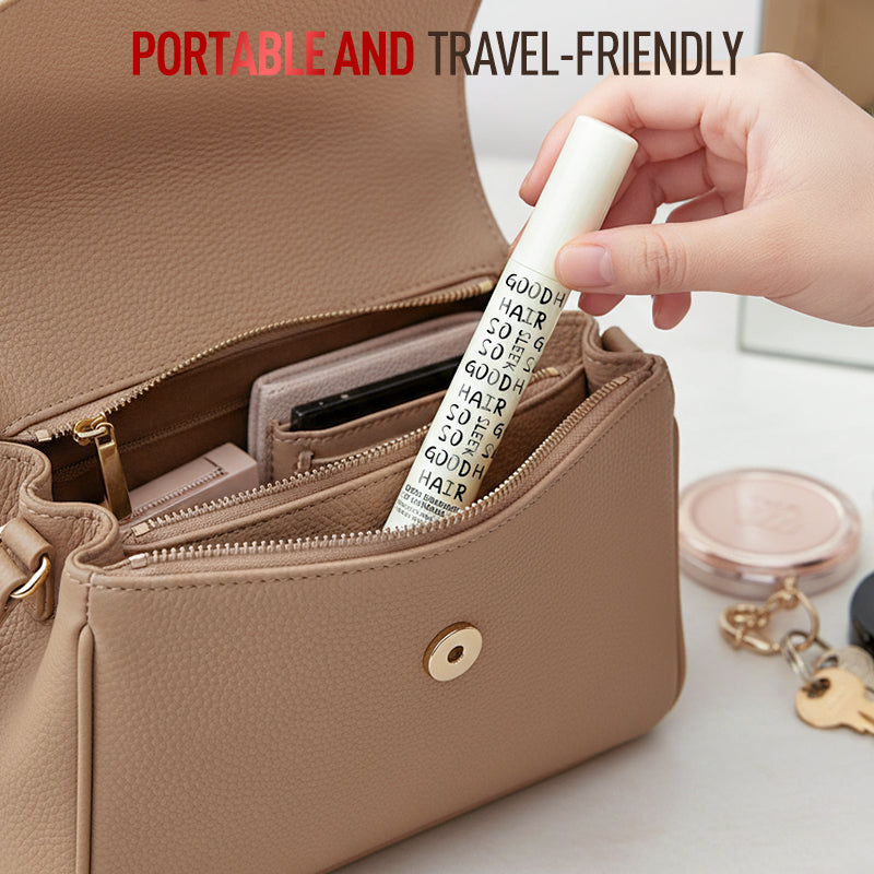 TRAGBAR UND PRAKTISCH FÜR UNTERWEGS – Kompakt, passt leicht in die Handtasche, den Sportrucksack oder ins Auto. Ideal für schnelle Ausbesserungen vor Besprechungen, Fotoshootings oder Abendveranstaltungen, damit jedes Haar perfekt sitzt, wenn es darauf ankommt, egal wo Sie gerade sind.