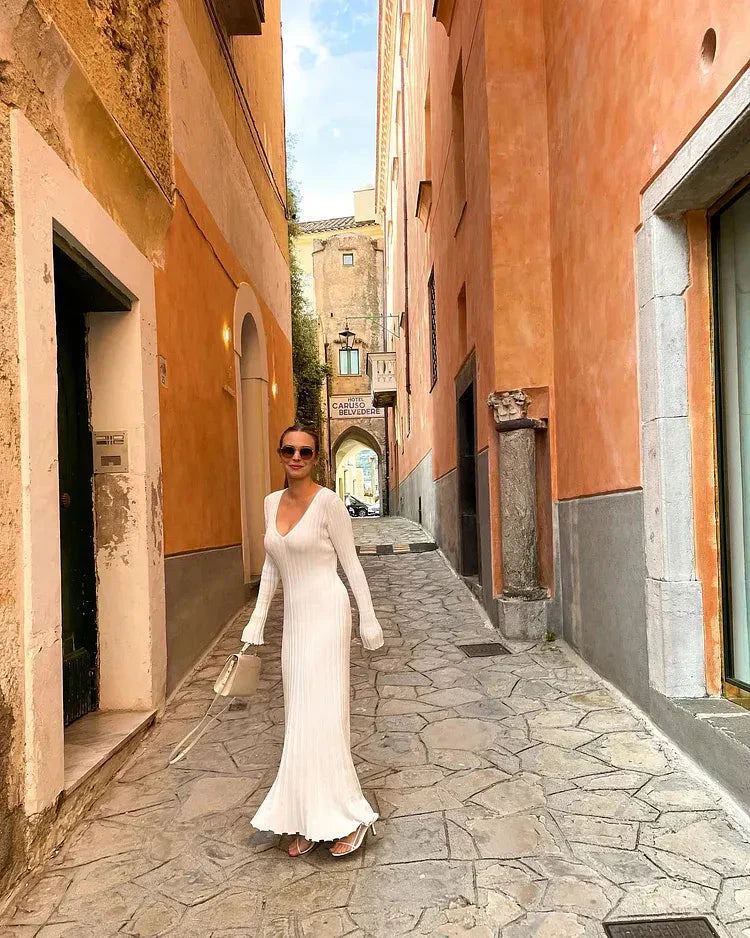 Das ärmellose Strick-Midi-Kleid für den Herbst 2024 ist so konzipiert, dass es mit seiner Rippstrickkonstruktion und A-Linien-Silhouette eine schmeichelhafte Passform bietet. Dieses Kleid besteht aus einem weichen und dehnbaren Stoff und eignet sich ideal für den täglichen Gebrauch. Der gerippte Stoff erzeugt eine schlanke und stilvolle Form, perfekt für alle Arten von Anlässen.