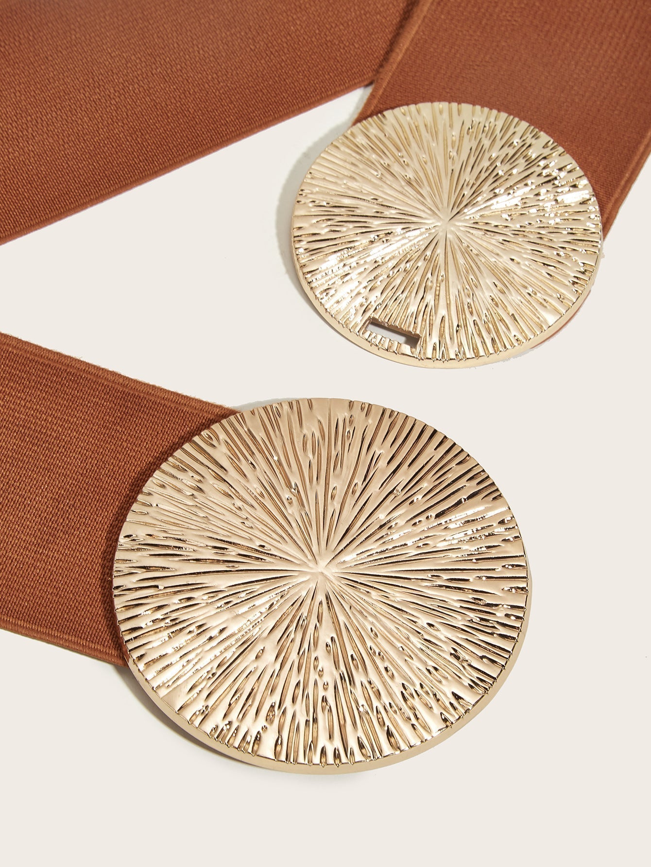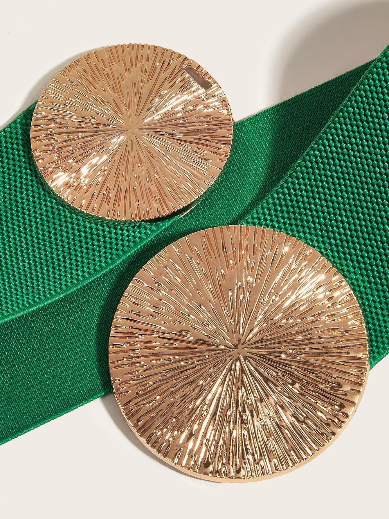 Gürtelänge: 70 cm Material der Gürtelschnalle: Legierung Verschlussart: Haken Breite: Breites Modell (>4 cm) Designdetails: Doppelte runde Schnalle mit elastischer Verstellung