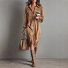 ANPASSBARES HEMDKLEID – Mit Knopfleiste vorne. Kann zugeknöpft oder leicht geöffnet getragen werden und lässt sich so flexibel stylen. Die knielange Silhouette eignet sich gut für entspannte Tage oder informelle Anlässe.