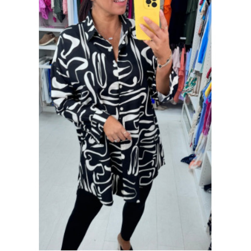 Lässiges, trendiges Langarmhemd mit Revers und Aufdruck für Damen