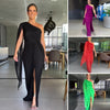 Lieferumfang: 1 × Elegantes One-Shoulder-Maxikleid für Damen mit Schlitz