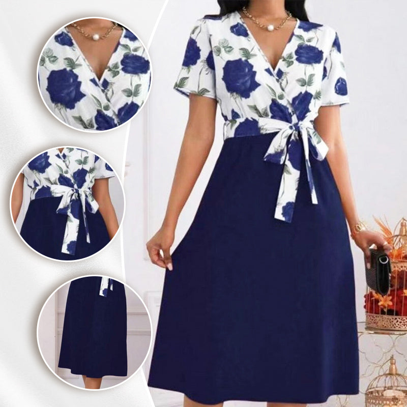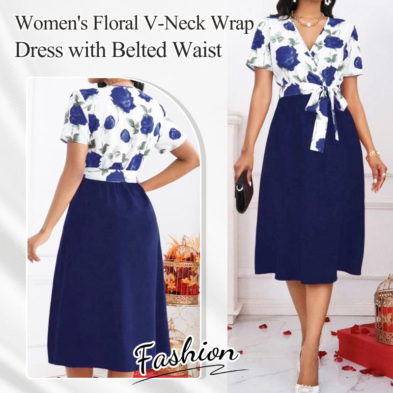 ELEGANTE SILHOUETTE DURCH WICKELDESIGN: Das Kleid besticht durch ein klassisches Wickeldesign mit femininem Blumenmuster, das sich natürlich Ihrem Körper anpasst und eine anmutige Silhouette schafft, die Ihre Figur betont. Die überlappende Frontpartie sorgt für sicheren Sitz und ermöglicht es Ihnen, die Passform individuell an Komfort und Selbstbewusstsein anzupassen.