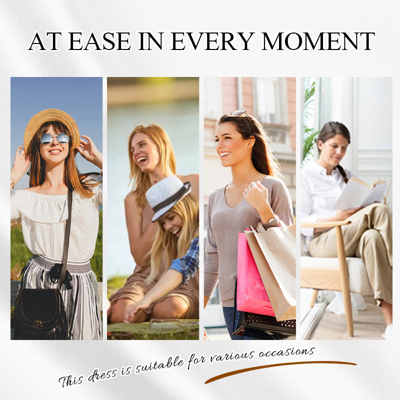 SCHMEICHELNDER V-AUSSCHNITT & VERSTELLBARER GÜRTEL: Ein sanft tief ausgeschnittener V-Ausschnitt rahmt Ihr Schlüsselbein schön ein und verleiht dem Kleid eine elegante, zugleich einladende Ausstrahlung. Der angenähte Bindegürtel schmiegt sich sanft an die Taille, sodass Sie Ihre Figur betonen oder den Gürtel locker für einen lässigen Look knoten können.