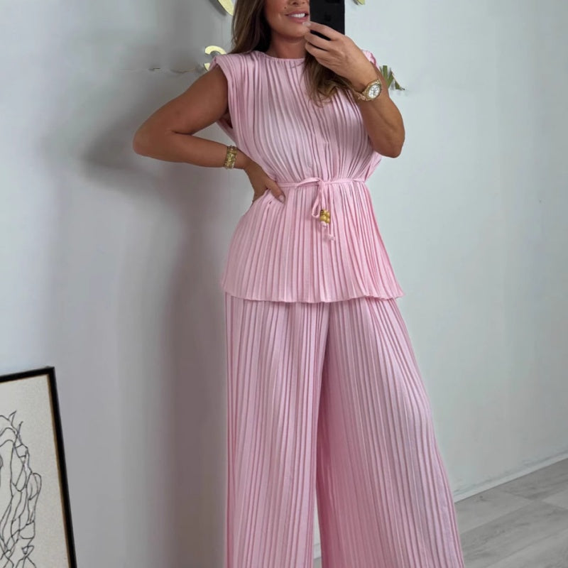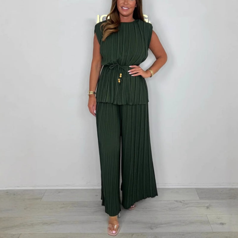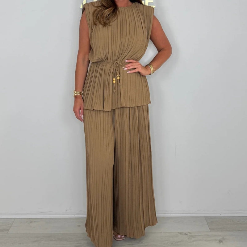 Damen-Zweiteiler: ärmelloses Top mit Gürtel und langer Hose