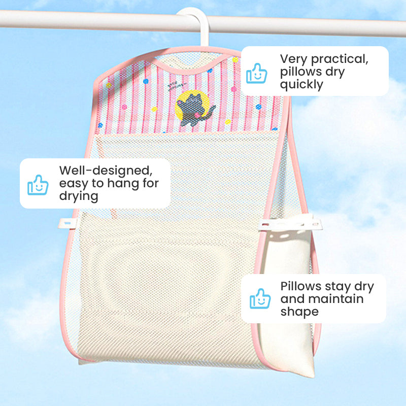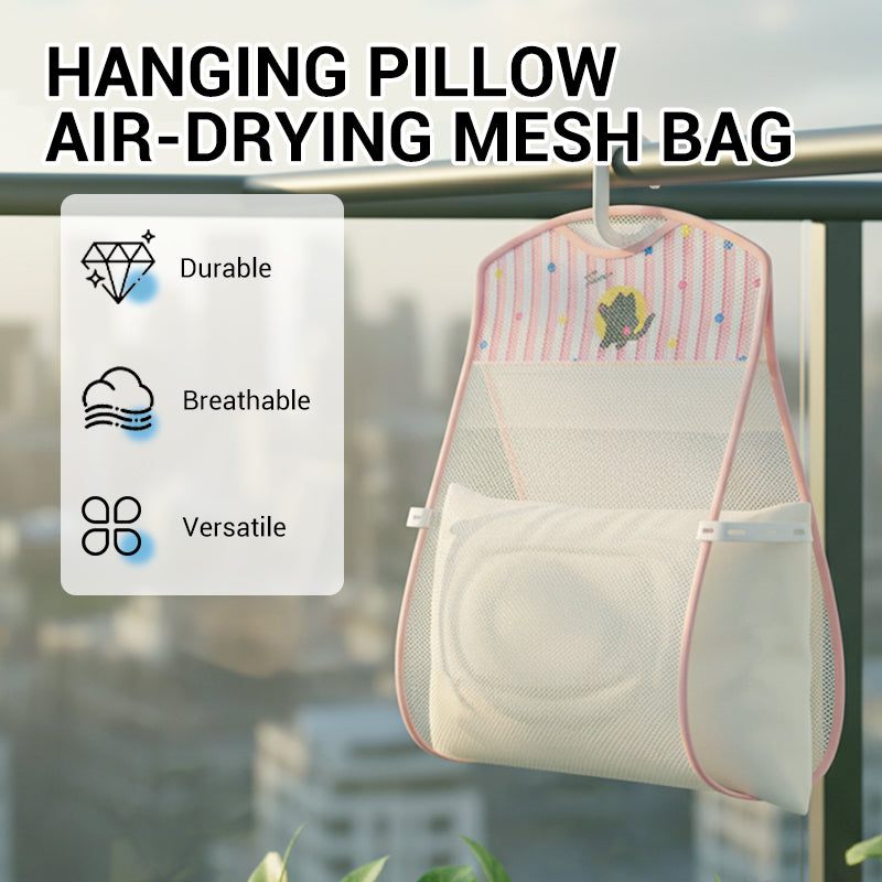 Hängendes Kissen zum Lufttrocknen im Netzbeutel
