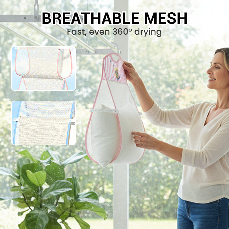 VIELSEITIGE TROCKNUNGSLÖSUNG: Nicht nur für Kissen geeignet. Verwenden Sie diesen multifunktionalen Beutel, um empfindliche Handtaschen, geliebte Plüschtiere oder sogar Schuhe sicher an der Luft zu trocknen, damit sie ihre Form behalten und bei richtiger Pflege länger halten.
