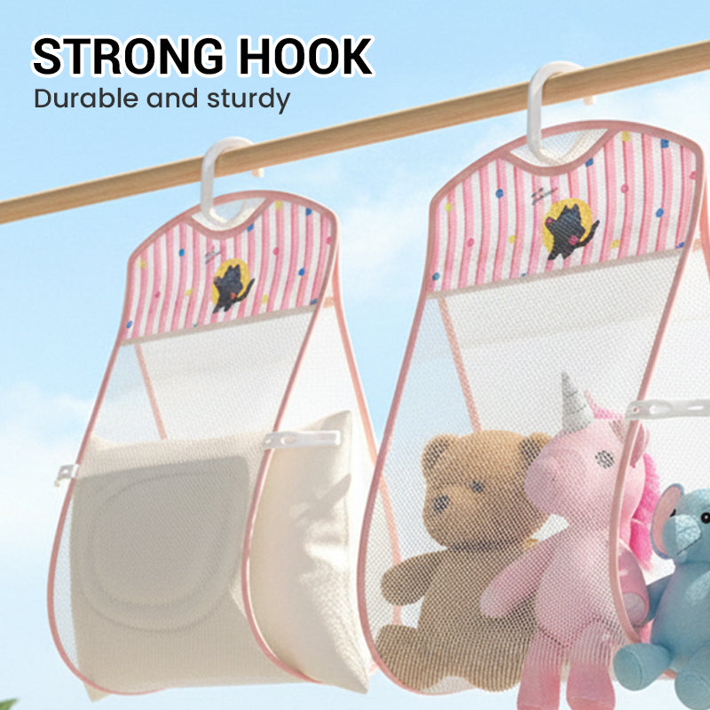 ROBUSTER HAKEN MIT HOHER TRAGKRAFT:Ausgestattet mit einem stabilen, integrierten Haken, der ein erhebliches Gewicht tragen kann. So können Sie schwere Kissen, feuchte Taschen oder mehrere Plüschtiere sicher aufhängen, ohne dass die Tasche reißt.